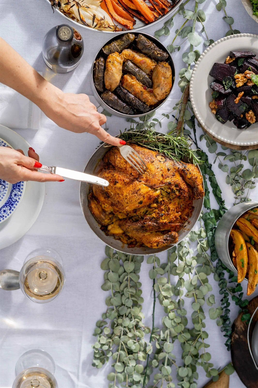 עוף שלם ממולא באורז אושפלאו גזר בצל וצימוקים אוזבקים